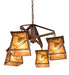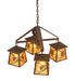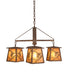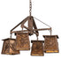 Listen closely. You can almost hear the soft whisper of the pine branches as they dance in the wind. Enjoy the ambiance of soft beautiful light diffused through four Amber Mica shades featuring stunning Pinecone and Pine Branch designs. This chandelier is enhanced with a Rococco finish. The overall height ranges from 23 to 53 inches as the chain length can be easily adjusted in the field to accommodate your specific lighting application needs. Handcrafted by highly skilled artisans in our 180,000 square manufacturing facility in Yorkville, New York. Shade colors, metal finishes and sizes can be customized. UL and cUL listed for dry and damp locations.