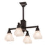 This classic Bungalow design embodies the ideal of the American home. The casual, cozy look of four Alabaster Swirl Glass shades is complemented with a Mahogany Bronze finish, making this handsome ceiling fixture suitable for countless applications. The chandelier is ideal for illuminating dining tables, entryways, and other residential and hospitality spaces from Grand Rapids, Michigan, to Mobile, Alabama, and Glendale, California. The Bungalow 4 Light Chandelier is included in our American-made, American-designed, handcrafted Mission Lighting Collection and manufactured in Yorkville, New York. The fixture is UL and cUL listed for dry and damp locations.