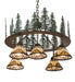 Green Hand painted Tall Pine Trees crown this stunning chandelier. Five Nuevo Mission shades feature interlocking tiles of Sand tone Beige glowing behind sun glistened Orange, Amber Green and Brown rays. The shade design is surrounded by a Root Brown border. These art glass shades are created using the famous Meyda Tiffany copperfoil construction method. The chandelier is enhanced with an Oil Rubbed Bronze finish and Green Trees accent. Overall height 26 to 170 inches as the chain length can be easily adjusted in the field to accommodate your specific lighting application needs. UL and cUL listed for dry and damp locations.