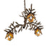Invite the natural charm of the American woodlands into your home, camp, lodge, or business with this stunning chandelier. 3 Amber Mica lanterns with a handsome Arts & Crafts design adorn Pine Branch shaped accents with matching Pine Needles on this unique, Nature Inspired fixture. This striking ceiling fixture features a Dark Burnished Antique Copper finished Barkerized metal trunk to create a mesmerizing effect. Overall height ranges from 17 to 46 inches as the chain can easily adjust in the field. The Pine Branch Valley View Chandelier is featured in our American-made, American-designed, handmade Nature Inspired Lighting Collection. Manufactured in Yorkville, New York. UL and cUL listed for dry and damp locations.