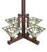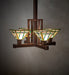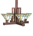 In the Prairie School architectural style tradition, organic objects were interpreted into geometric forms. In this ceiling pendant, we use colorful interlocking blocks of multicolored glass in hues of blue/green with accent blocks of blue and burgundy to form stylized wheat stalks on a Beige Cream background. The four handcrafted art glass shades are created using the famous Meyda Tiffany copperfoil construction process and enhanced with Mahogany Bronze finished hardware. Ideal as a ceiling fixture in a dining area, entryway, and other spaces in residential, hospitality, and commercial settings. Inspired by homes in the Oak Park neighborhood in Chicago, Illinois. The Prairie Wheat Inverted Pendant is included in our American-designed, handmade Prairie Lighting Collection. UL & cUL listed for dry and damp locations.