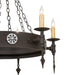 Bring Gothic Revival into your home with the elaborate Warwick Chandelier. The luxurious fixture integrates a rustic Motif with classic style. Six Ivory Faux candlelights perched atop bobeches on a ring feature speartip accents and provide lighting that conjures up images of romanticized bygone days. Decorated with cast iron medallions and enhanced with a Dark Roast finish, it completes the evocative impression. Ideal for placement above dining tables, in entryways, and living spaces in residential and hospitality settings. Inspired by decorative chandeliers found in castles, from West Hills, New York, to Loveland, Ohio, to Honolulu, Hawaii. The overall height ranges from 39 to 70 inches, as the chain length easily adjusts in the field. The Warwick Chandelier is included in our American-made, American-designed, handmade Gothic Lighting Collection and manufactured in Yorkville, NY. UL and cUL listed for dry and damp locations.