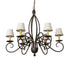Elegant, classic European chandeliers inspired Squire's silhouette, employing Hand-Forged Iron scrolled arms and contoured supports to define its graceful profile from top to bottom and arm to arm. 6 Ivory faux candlelights perched on saucer-like bobeches and crowned with White Textrene shades that add a lovely touch to this fixture, hand-finished in Gilded Tobacco. The overall height ranges from 45 to 94 inches, and the chain easily adjusts in the field to meet your exact specifications. The fixture is ideal for dining spaces and entryways in fine homes and hospitality locations from Fort Lauderdale, to Santa Rosa and Cucamonga, California. The Squire Chandelier is included in our American-made, American-designed, handmade Traditional Lighting Collection, which is manufactured in Yorkville, NY. The fixture is UL & cUL listed for dry and damp locations.