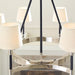 The Katie six light single tier chandelier in polished nickel features leather straps suspended from the chain to round out the design of this timeless series.