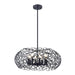 Zeev Lighting Helios Collection 8-Light 22 Inch Pendant Light with Organic Metal Patterned Oval Shade and Matte Black Finish.
