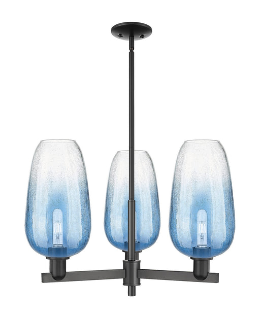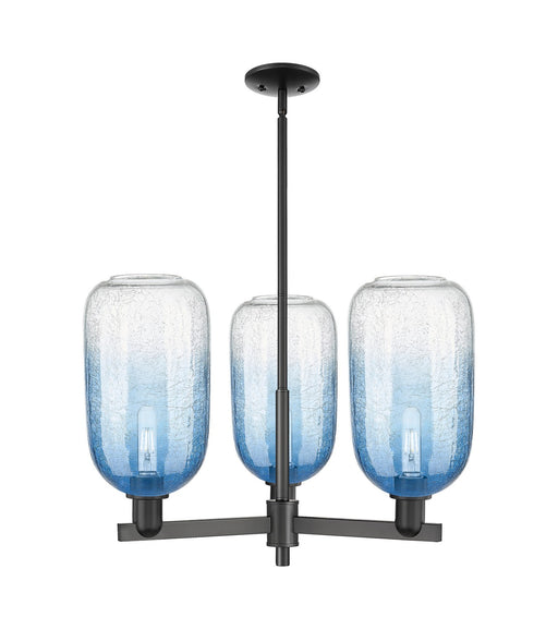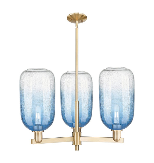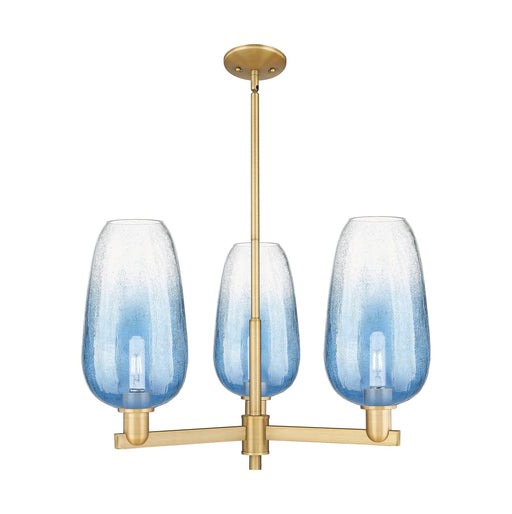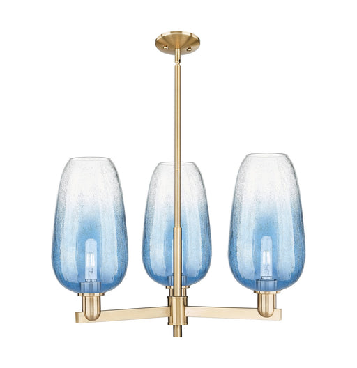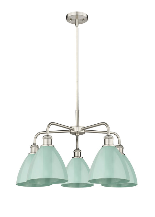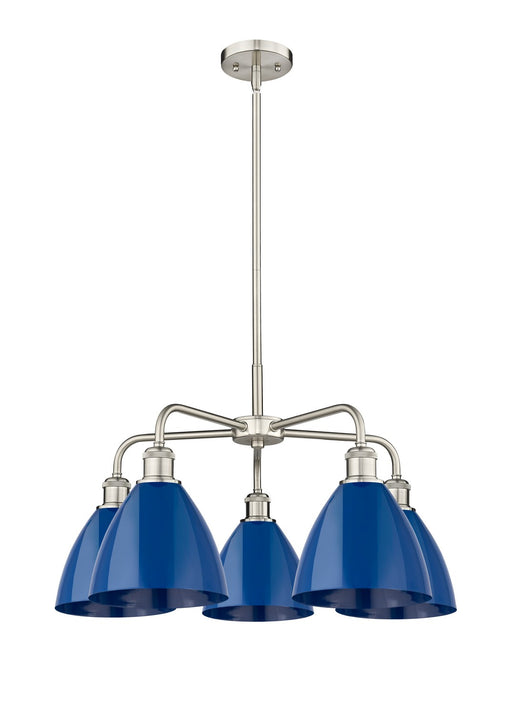 Plymouth - 5 Light - 26 inch - Satin Nickel - Blue Shade - ChandelierDetails:Product Type: Glass DownFinish: Satin NickelShade: Blue PlymouthRooms:...