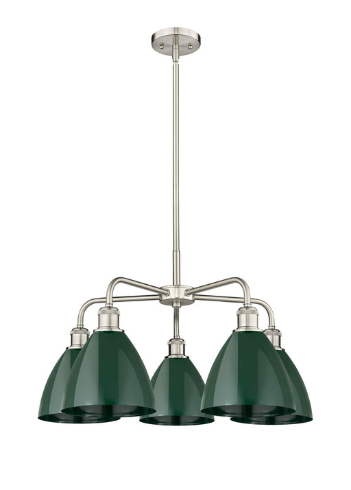Plymouth - 5 Light - 26 inch - Satin Nickel - Green Shade - ChandelierDetails:Product Type: Glass DownFinish: Satin NickelShade: Green PlymouthRoom...