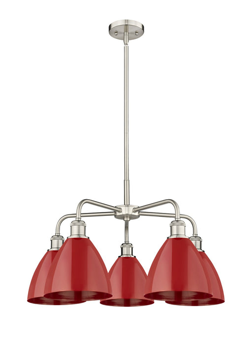 Plymouth - 5 Light - 26 inch - Satin Nickel - Red Shade - ChandelierDetails:Product Type: Glass DownFinish: Satin NickelShade: Red PlymouthRooms: K...
