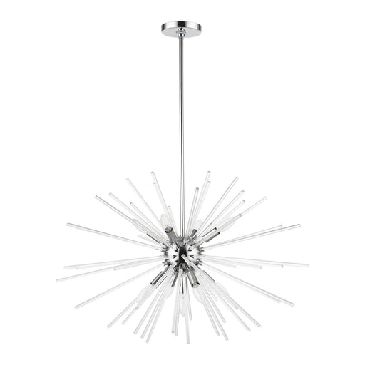 This Euro-chic dimensional eight light chandelier features a laser-cut metal openwork frame enhanced with polished chrome finish.Details:Product Ty...