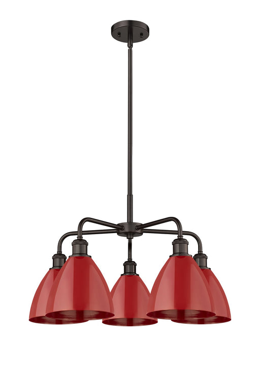 Plymouth - 5 Light - 26 inch - Oil Rubbed Bronze - Red Shade - ChandelierDetails:Product Type: Metal ShadeFinish: Oil Rubbed BronzeShade: Red Plymo...