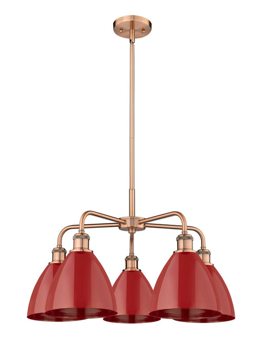 Plymouth - 5 Light - 26 inch - Antique Copper - Red Shade - ChandelierDetails:Product Type: Glass DownFinish: Antique CopperShade: Red PlymouthRoom...