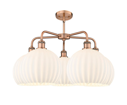Fenton - 5 Light - 25 inch - Antique Copper - Matte White Shade - ChandelierDetails:Product Type: Glass DownFinish: Antique CopperShade: Matte Whit...
