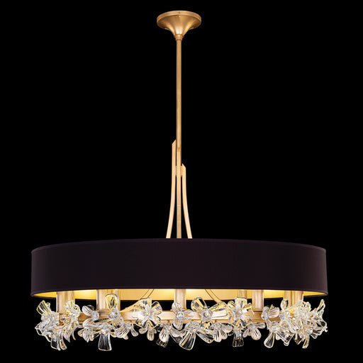Interweaving signature Fine Art studio glass with the noble element of our handmade metal fabrication, this soft gold leaf chandelier combines clas...