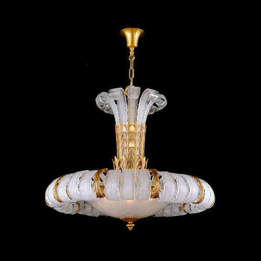 Details:Product Type: Glass DownFinish: French GoldDesigner: Mariner LuxuryMeasurements:Width / Dia: 27.95"Height: 26.77"Canopy: Ã7,16"Weight: 67....