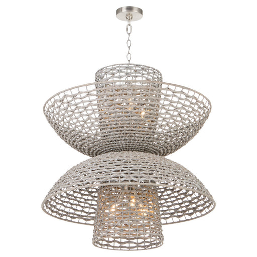 A reflected geometric form composed of water hyacinth and rattan adds drama through a symphony of shadows in the Masasa chandelier. Pale grey finis...