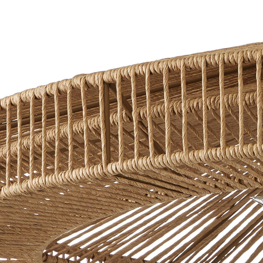 Scallops of Kraft paper twine fold around the wrought iron frame of the Ancroft Chandelier to form a delicate flowing silhouette. The string has a ...