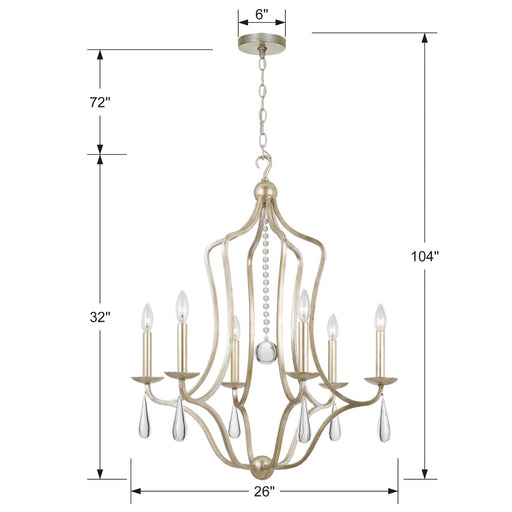 View full detailsCrystorama 5976-SL Six Light Chandelier, Silver Leaf