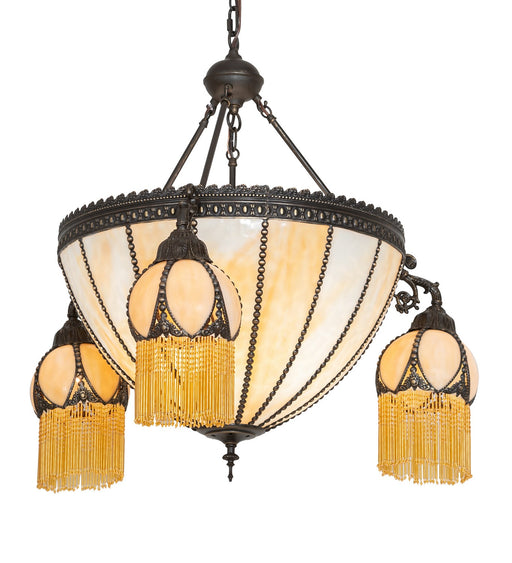 Embrace the timeless look of this Gothic chandelier. A Beige hand-curved art glass shade complemented with 3 diminutive color coordinated shades wi...