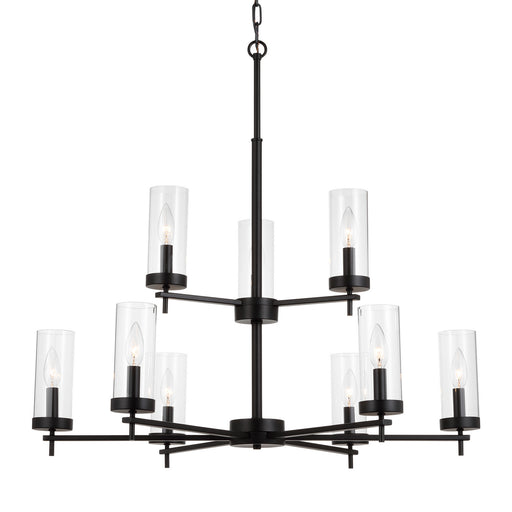 The Zire nine light multi tier chandelier in Midnight Black finish embodies simple clean lines that strike a perfect balance of elegant yet minimal...