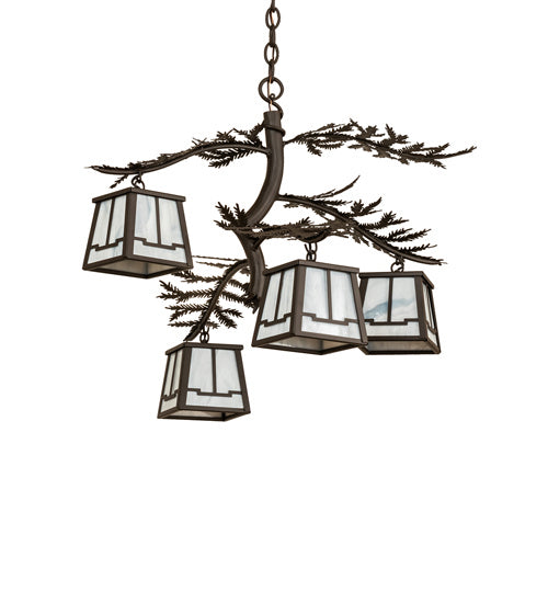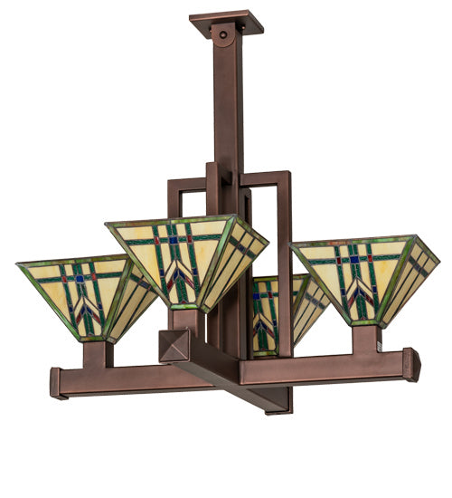 In the tradition of the Prairie School, organic objects were interpreted into geometric forms. In this four light chandelier, Meyda Tiffany uses co...