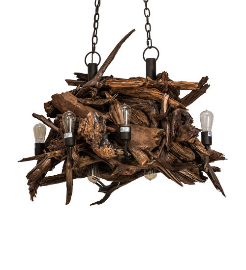 Sparkling twinkles, drama and intrigue are evoked from 8 Edison style lamps embracing Weathered Driftwood harvested from the shorelines of the Adir...