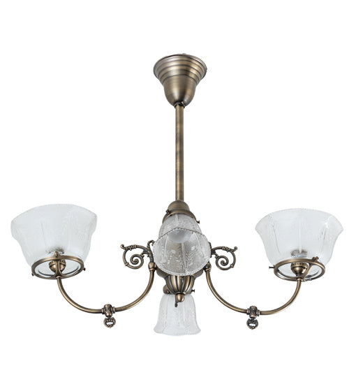Reminiscent of lighting fixtures from the early 1900s. The Revival Gas & Electric Chandelier features four Clear Etched Glass shades with an el...