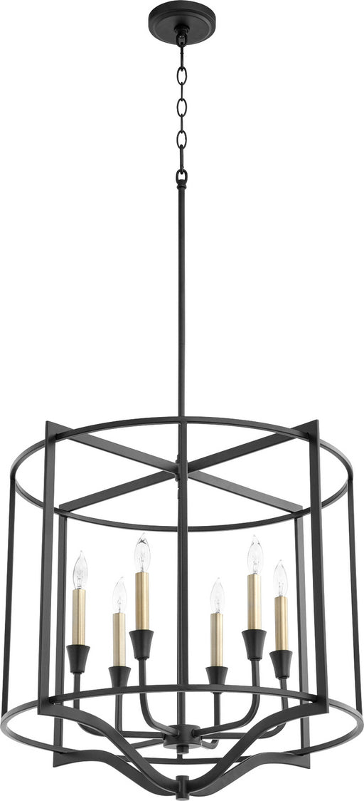 View full detailsQuorum 629-6-6980 Six Light Chandelier, Textured Black w/ Aged Brass