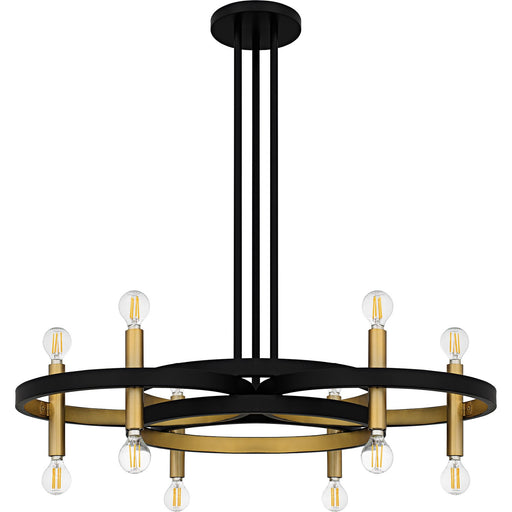View full detailsQuorum 607-9-6980 Nine Light Chandelier, Textured Black w/ Aged Brass