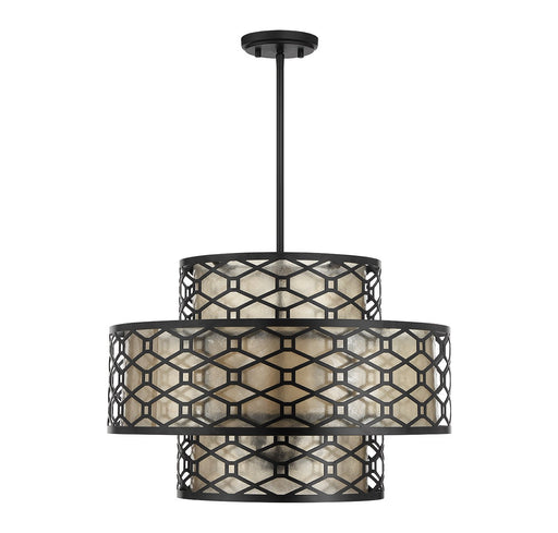 The Mannheim 4-light pendant is certain to become the focal point of any space with its beautifully intricate latticework design, textured mica sha...