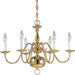 Six-light chandelier in the timeless Americana collection with delicate arms, decorative center column and candelabra lamps. Polished Brass finish.