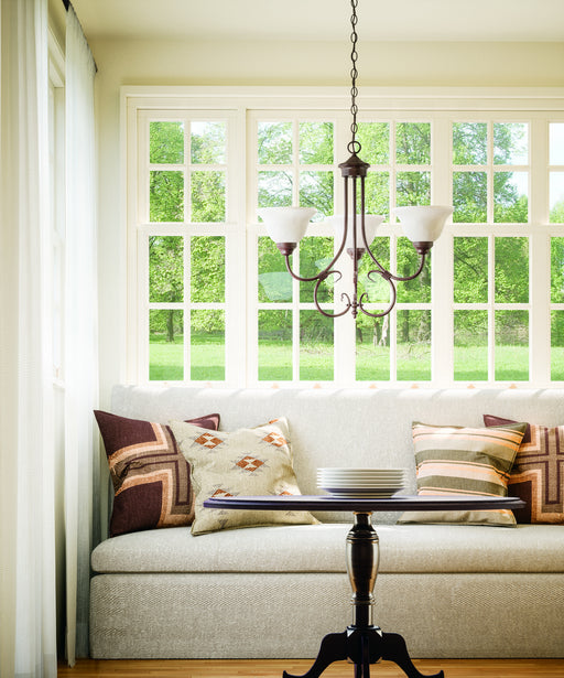 View full detailsQuorum 6410-3-186 Three Light Chandelier, Oiled Bronze w/ Satin Opal