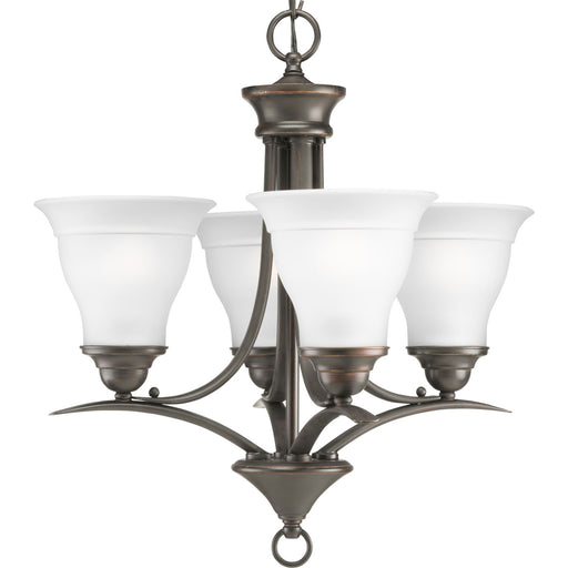Four-light chandelier featuring soft angles, curving lines and etched glass shades. Gracefully exotic, the Trinity Collection offers classic sophis...