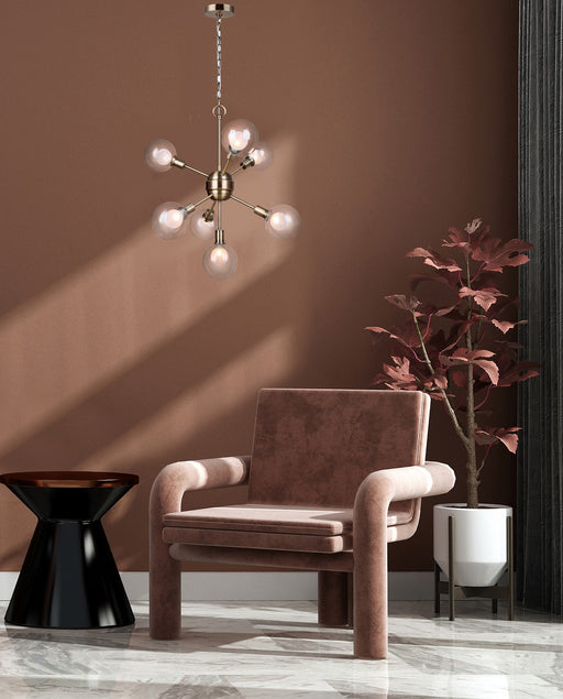 7-Light 28" Burlap Dome Pendant with Individual Clear Glass Globes and Antique Brass Metal Finish.Details:Product Type: Glass DownFinish: Antique B...