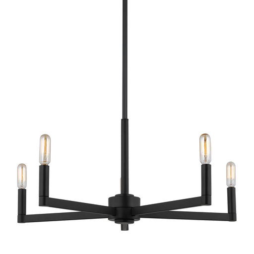 The Fullton five light single tier chandelier in Midnight Black is sleek, contemporary, and uber minimalistic. Visual interest is created using a m...