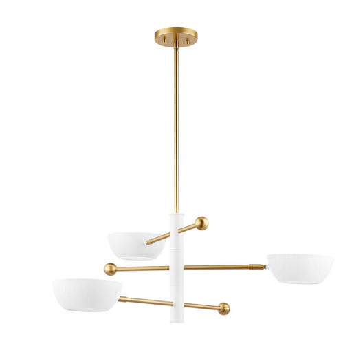 View full detailsMeridian M100143WHNB Three Light Chandelier, White and Natural Brass