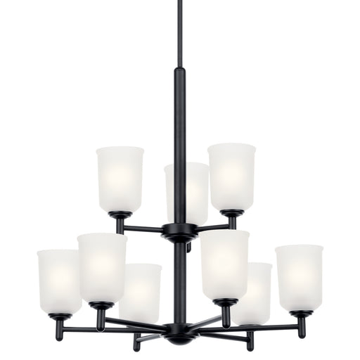 The Shailene 26.5" 9 light 2 tier chandelier features a classic look with its clean lines in Olde Bronze finish and satin etched glass. The Shailen...