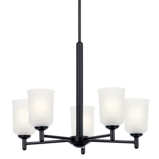 The Shailene 18.25" 5 light chandelier features a classic look with its clean lines in Olde Bronze finish and satin etched glass. The Shailene chan...