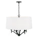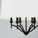 The contrast of the fabric drum shade and the muted tone of the Matte Black finish of the Peyton 6-Light Pendant put a tailored touch on the transitional look. The sharp lines and artistic arches are a nod to old world influence with a modern update.