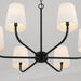 Embodying true minimalist form, the Brody Chandelier brings sleek, simplified style. The Matte Black finish enhances the classic look of the white fabric shades to deliver sophisticated, less-is-more design. Available in two sizes.