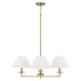 Decadence is in the details. The Gilda Small Chandelier brings the glamour with interchangeable tortoise shell or clear acrylic bobeches. The Aged Brass finish adds a warm tone, while the tapered White fabric stay-straight shades and squared arms create a crisp, classic aesthetic.