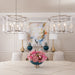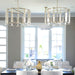 A luminescent crystal cubes create a high glam statement in the Carson Collection highlighting a sleek nickel based candle sleeves in the center. Magnificently modern, the fixture, adds the perfect amount of sophisticated statement to any space, and perfectly catches the light.