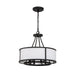 Showcasing a classic drum pendant, the Bryant is crafted with a white glass shade and black steel frame. The outer drum surrounds an inner suspension of candelabra sockets. The contrasting materials and bold graphic lines provide a design-driven style and a striking visual accent to many interior settings.