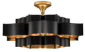 Currey and Company 9000-0429 Six Light Chandelier, Satin Black/Contemporary Gold Leaf