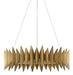 Brutalist design and desert yucca inspired the sculptural Potter Chandelier envisioned by Denise McGaha. The gold chandelier, made of wrought iron in an Aurora antique finish, brings texture to a space with its spiked extensions that flow along in graduating heights.