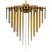 A lustrous collection of delicate, high-gloss metal chains cascade like gleaming streams of water in this transitional piece. Resembling armored chain mail, the polished, plated mesh envelops each integrated LED light to add a soft, shimmering glow.