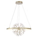 A bouquet of opal and clear glass florets are framed by a lustrous LED ring. The delicate blossoms shine gracefully above, reflecting light through the different opacities. Choose between two different sized clusters to lavishly suit your room needs.