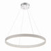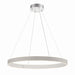 The Verdura collection features vegan leather, accentuated by decorative silver studs. The two-toned fabric highlights one color on the inside while displaying a complementary second color on the outer ring. The textured grooves are highlighted by the luminous glow of integrated LED lights that are encased between. This collection is not only abundant in size but also in the number of fixtures offered. Be it a small home office or a grand staircase, the Verdura collection is available in a range of fixture sizes to fit any room space.