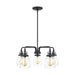 The Belton five light single tier chandelier in midnight black is the perfect way to achieve your desired fashion or functional needs in your home. Influenced by the vintage industrial designs of early 20th Century America, the transitional Belton lighting collection has seeded glass shades and Midnight Black finish, adding a layer of retro design to the warm look.