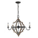 The Socorro four light mini-chandelier in stardust enhances the beauty of your home with ample light and style to match today's trends. The transitional Socorro lighting series by features a classic, barbed Quatrefoil profile - wholly updated by combining a distressed Cerused Oak finish on the decorative silhouette with the rich Stardust finish on the metal bobeches and decorative strapping to create undeniable rustic charm. While still offered in its original finish Stardust, the Socorro has been beautifully updated with our popular Washed Pine and Chrome finish to offer a modern take on this timeless industrial beauty. The collection includes a four-light mini-chandelier, medium and large six-light chandeliers, and four-light and six-light hall / foyer pendants. Incandescent candelabra base lamping.