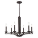 A stylish interpretation of simplicity is evident in the expansive Trumbull collection. Every element is both functional and stylish. This six light chandelier features a bronze finish.